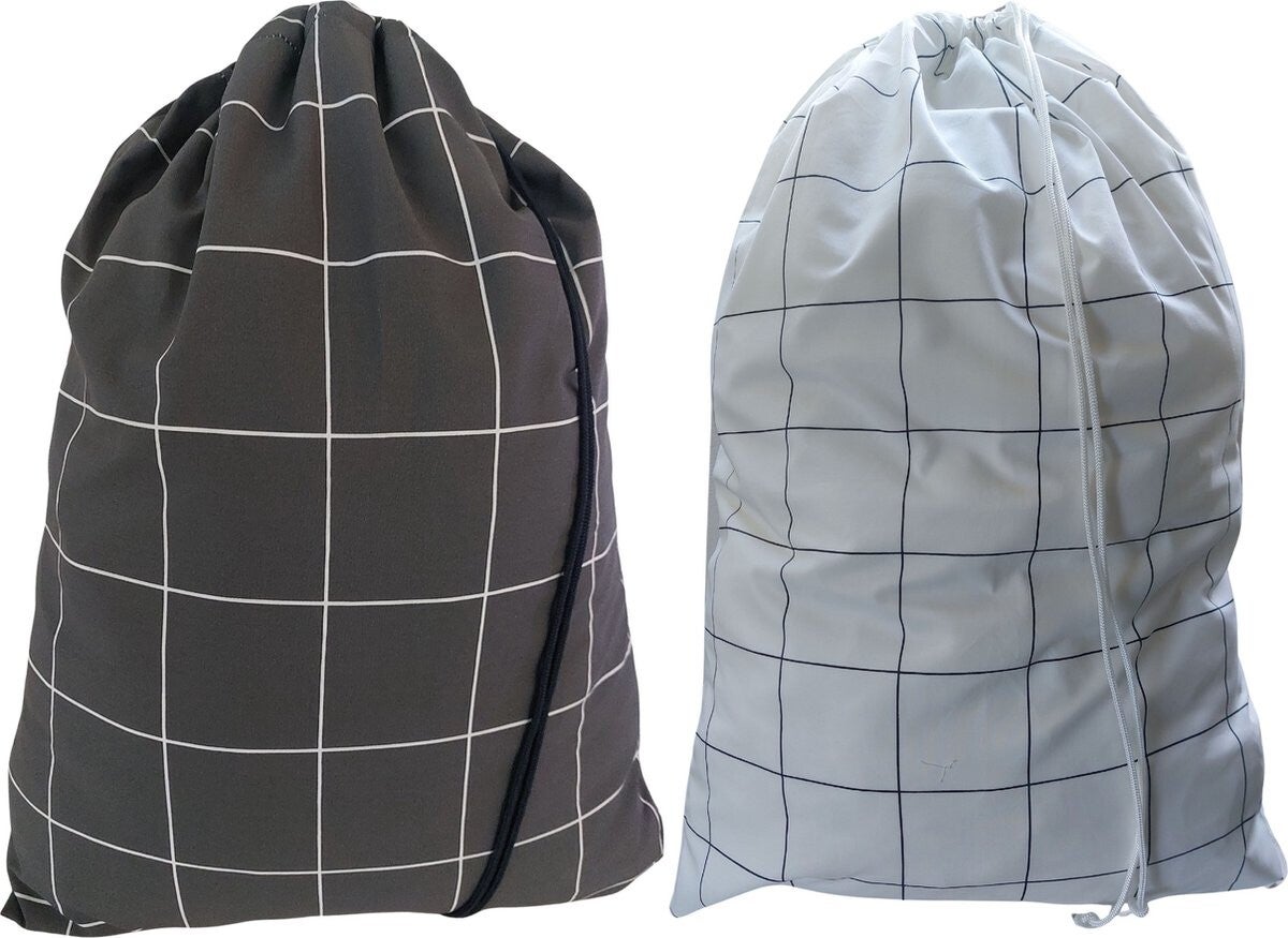 Bluvardi katoenen waszakken set van 2 stuks - XL -wit- grijs - ruit