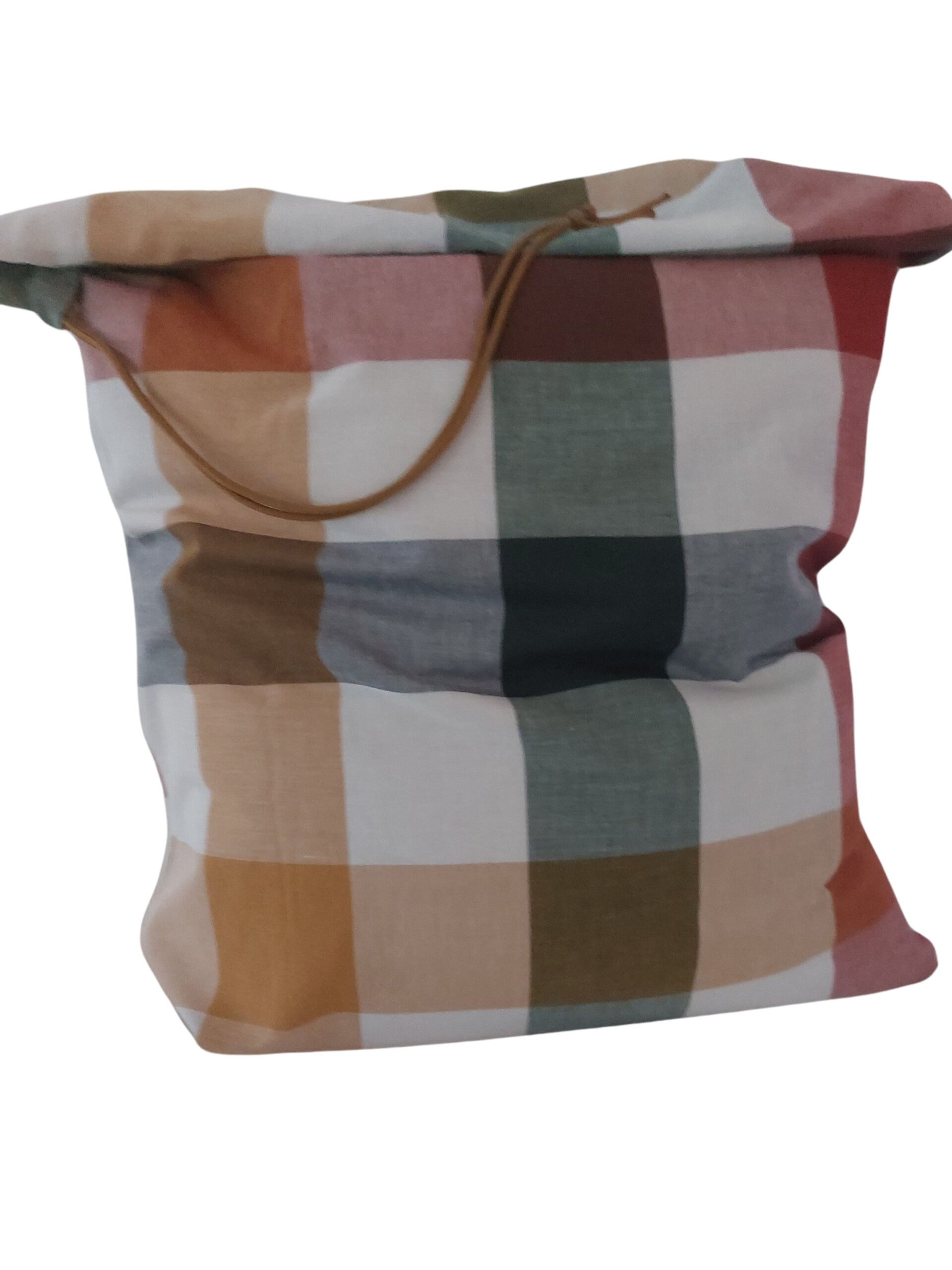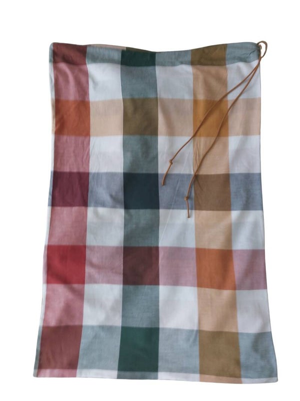 Bluvardi katoenen waszak -XXL- met trekkoord - multi ruit-oranje