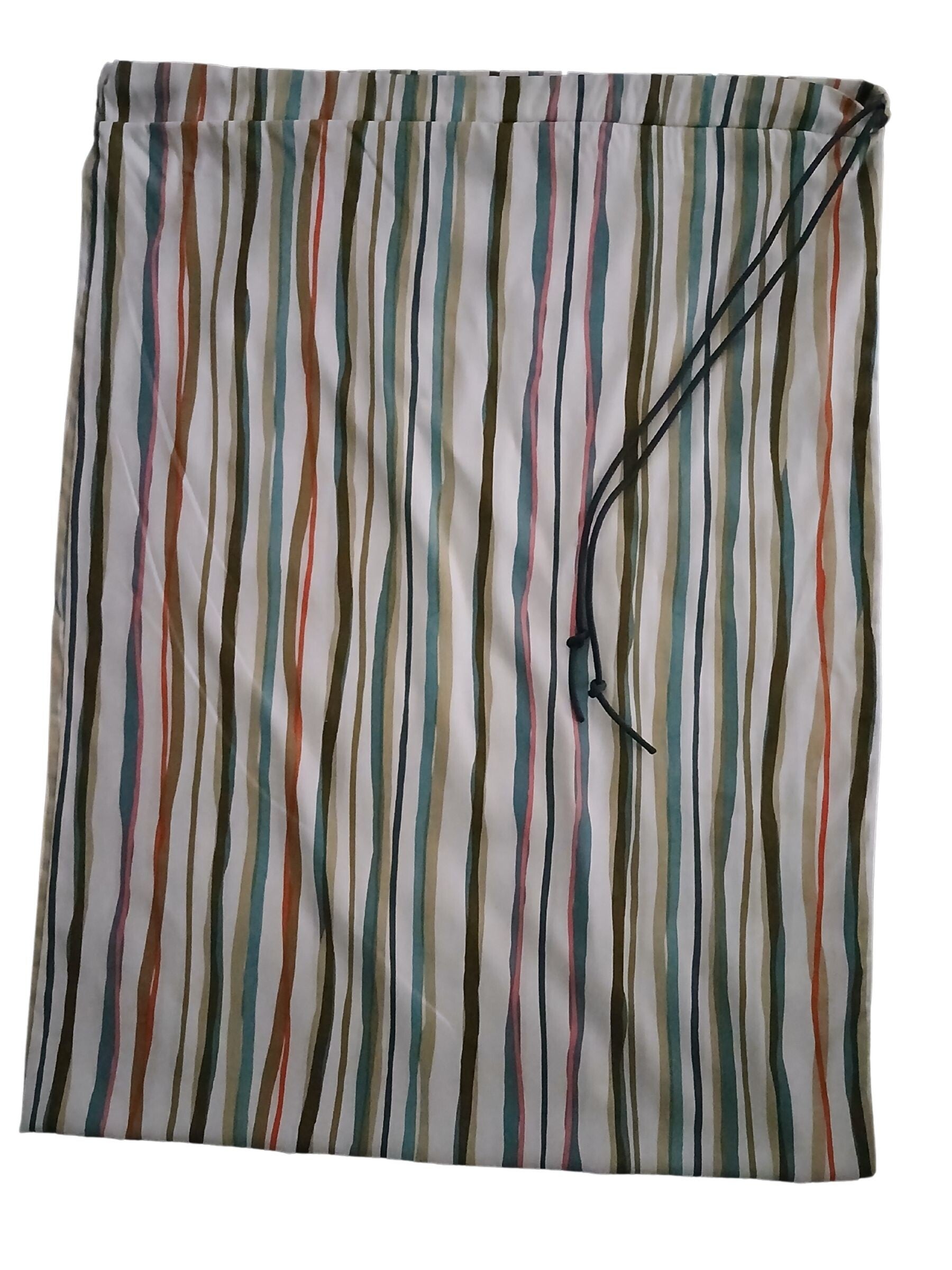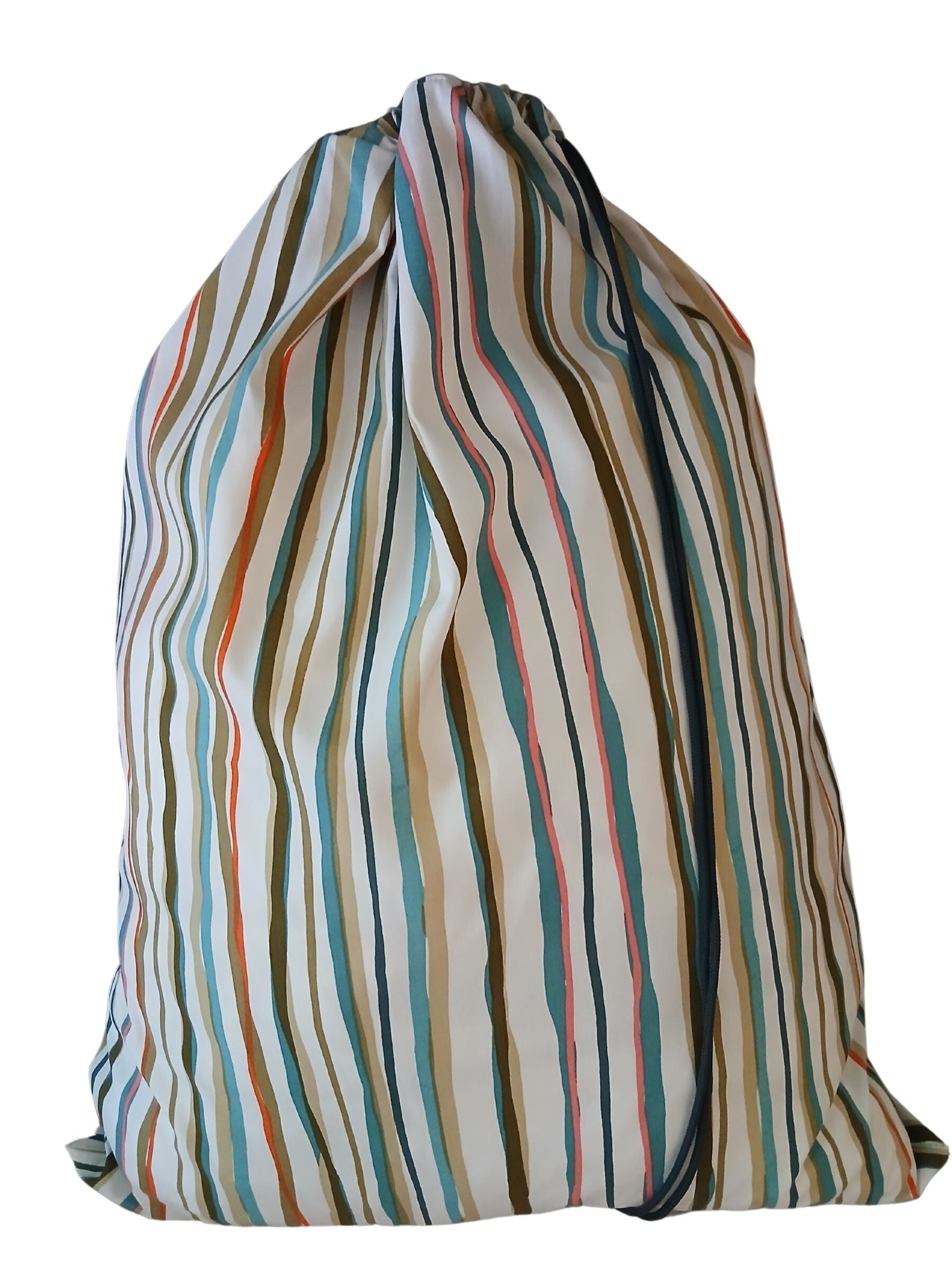 De waszak is gemaakt van 100% katoen. Door zijn slimme design neemt hij weinig ruimte in en kan hierdoor compact worden opgeborgen. Gooi de was in de zak en sluit de zak vervolgens met het trekkoord. Zo blijven nare geurtjes in de zak en is alles netjes opgeborgen. Fijn voor jezelf én mensen in de buurt. Gebruik de waszak in huis, op de camping, op reis, tijdens outdoor activiteiten, of geef ‘m mee aan de kids op kamp.